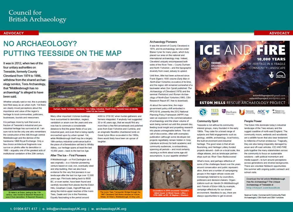 Spencer Carter, Projects Co-Director, will present and talk about the ICE AND FIRE rescue archaeology project on Teesside’s Eston Hills, at the Palaeolithic & Mesolithic Conference being held at the British Museum, 25-6 October 2018.
