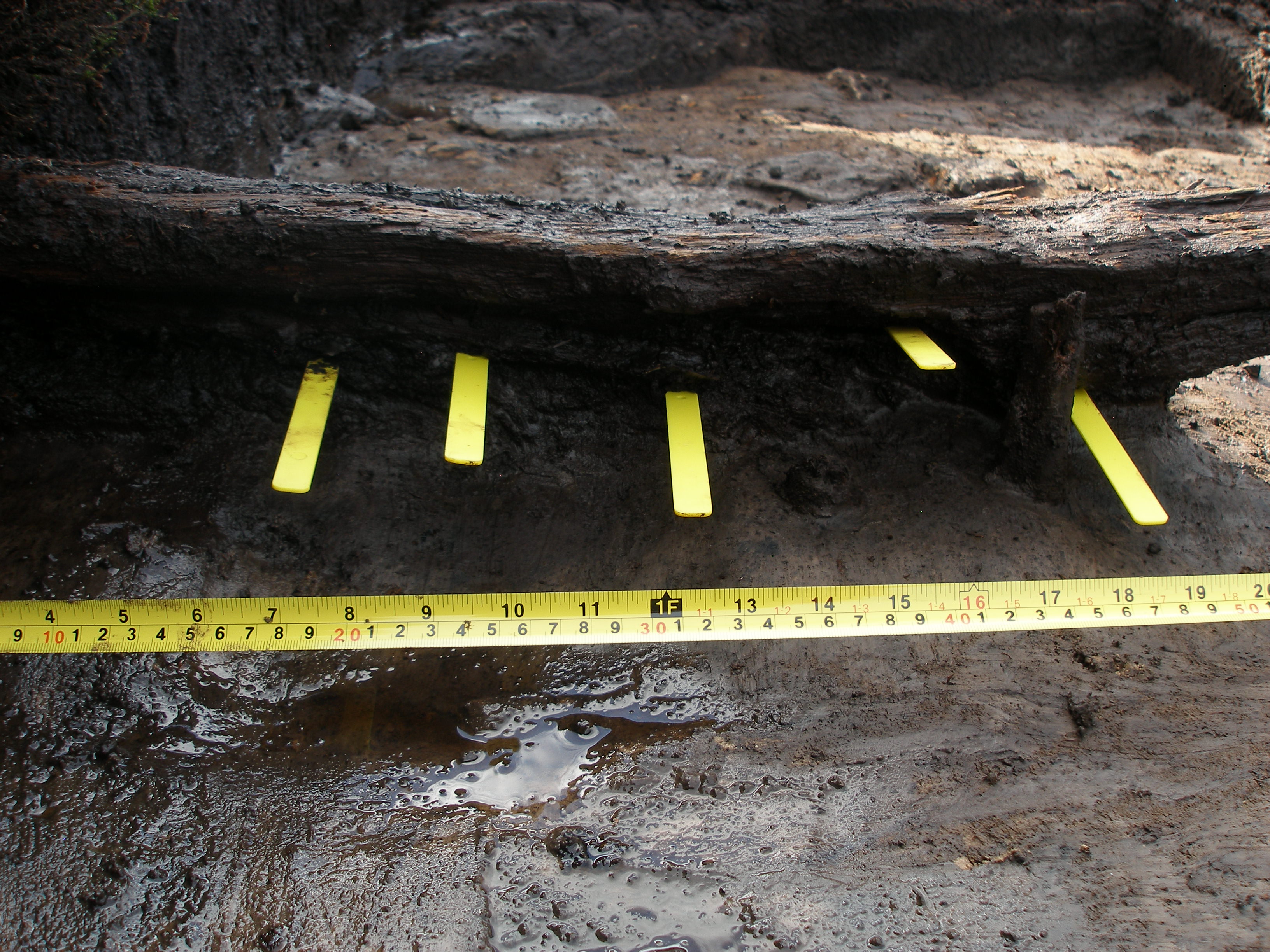 Yellow markers for the flints underneath the timber.