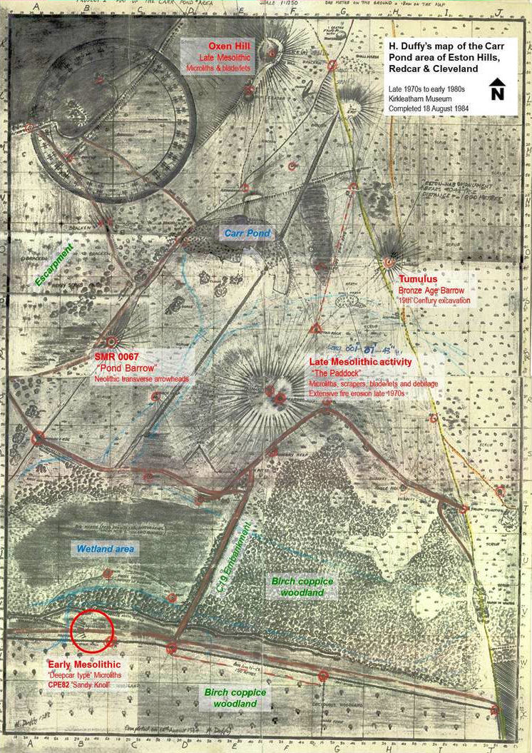 H. Duffy’s map of Eston Hills | Site CPE82 shown as “Sandy Knoll”