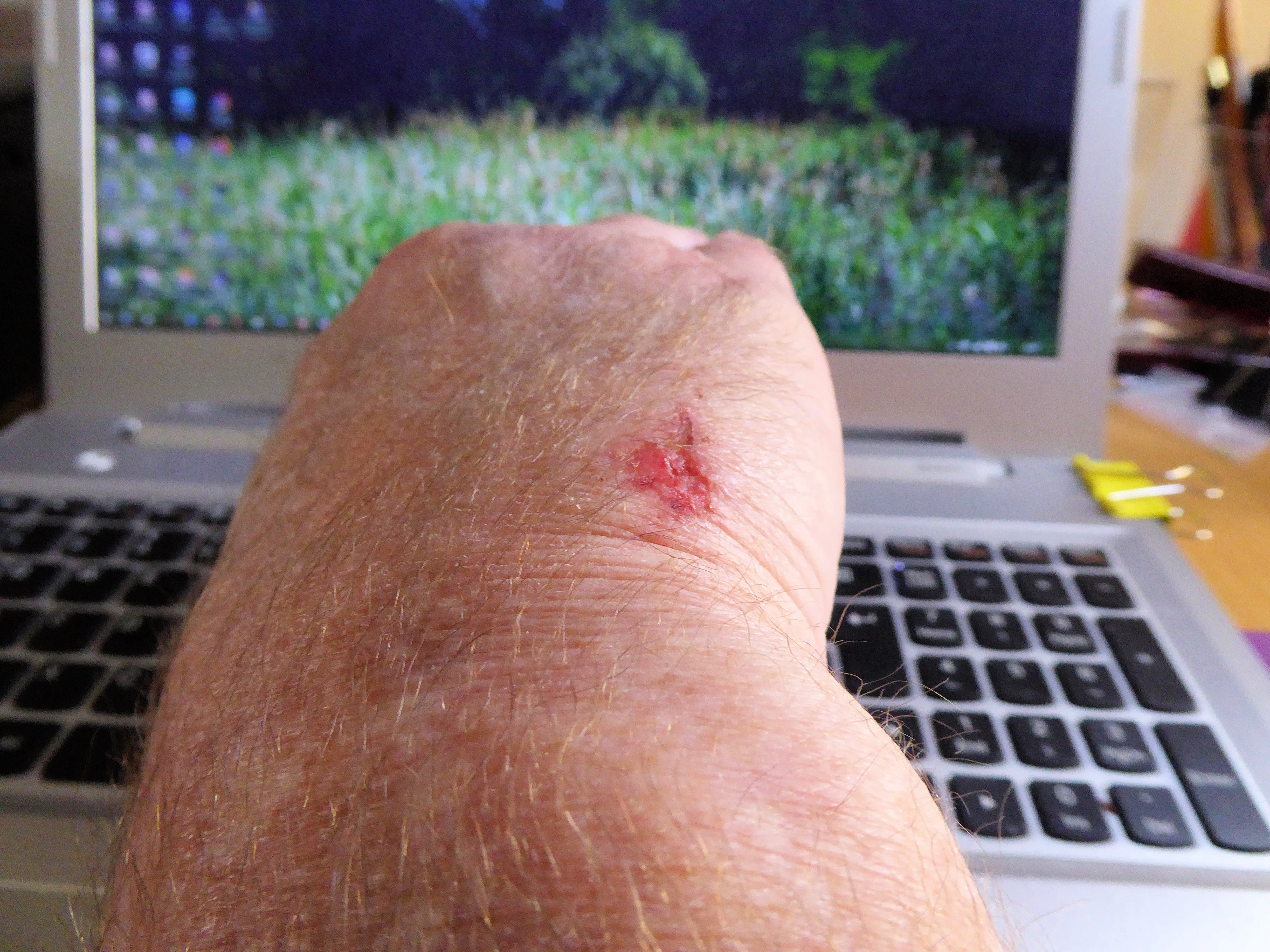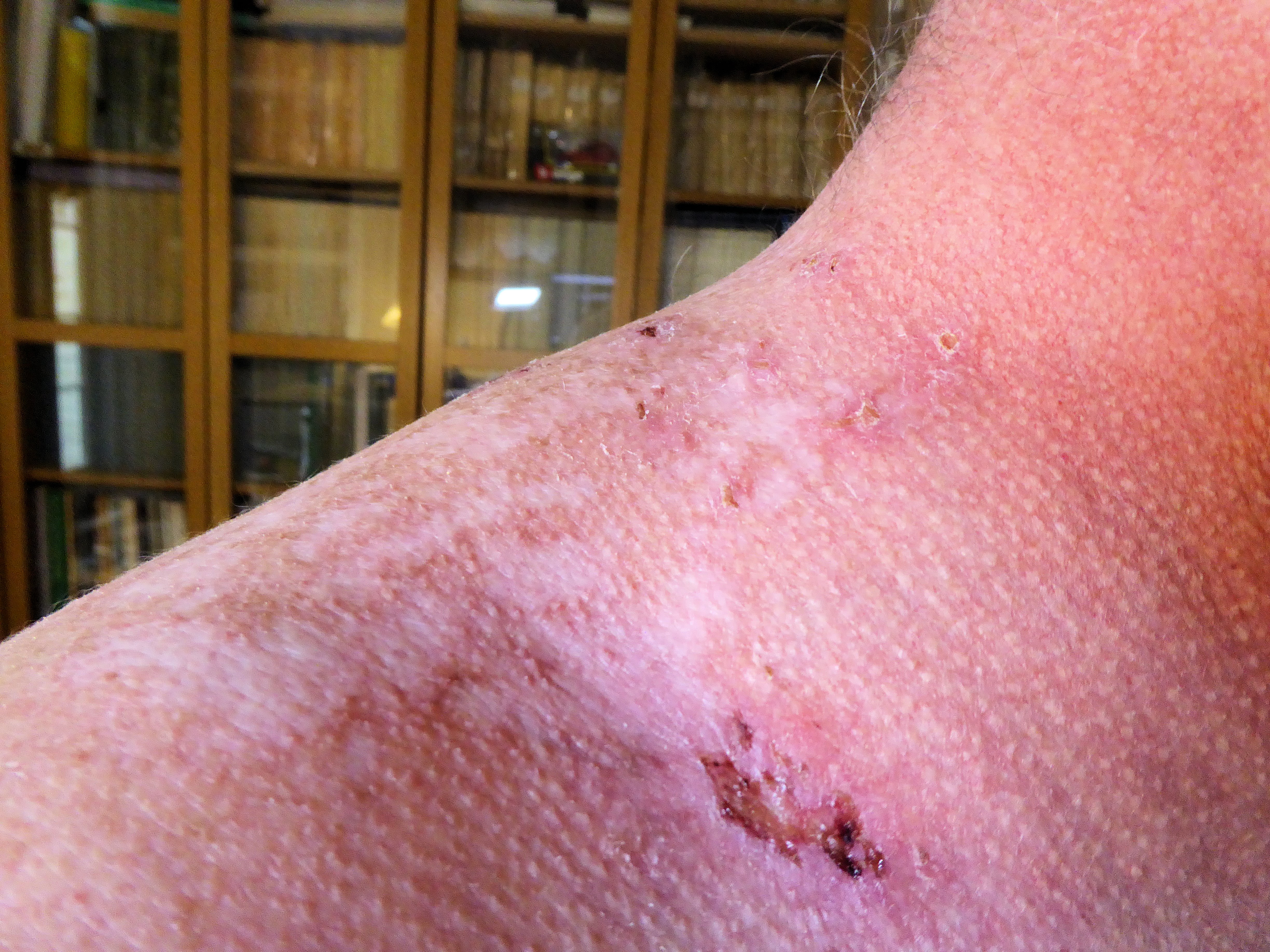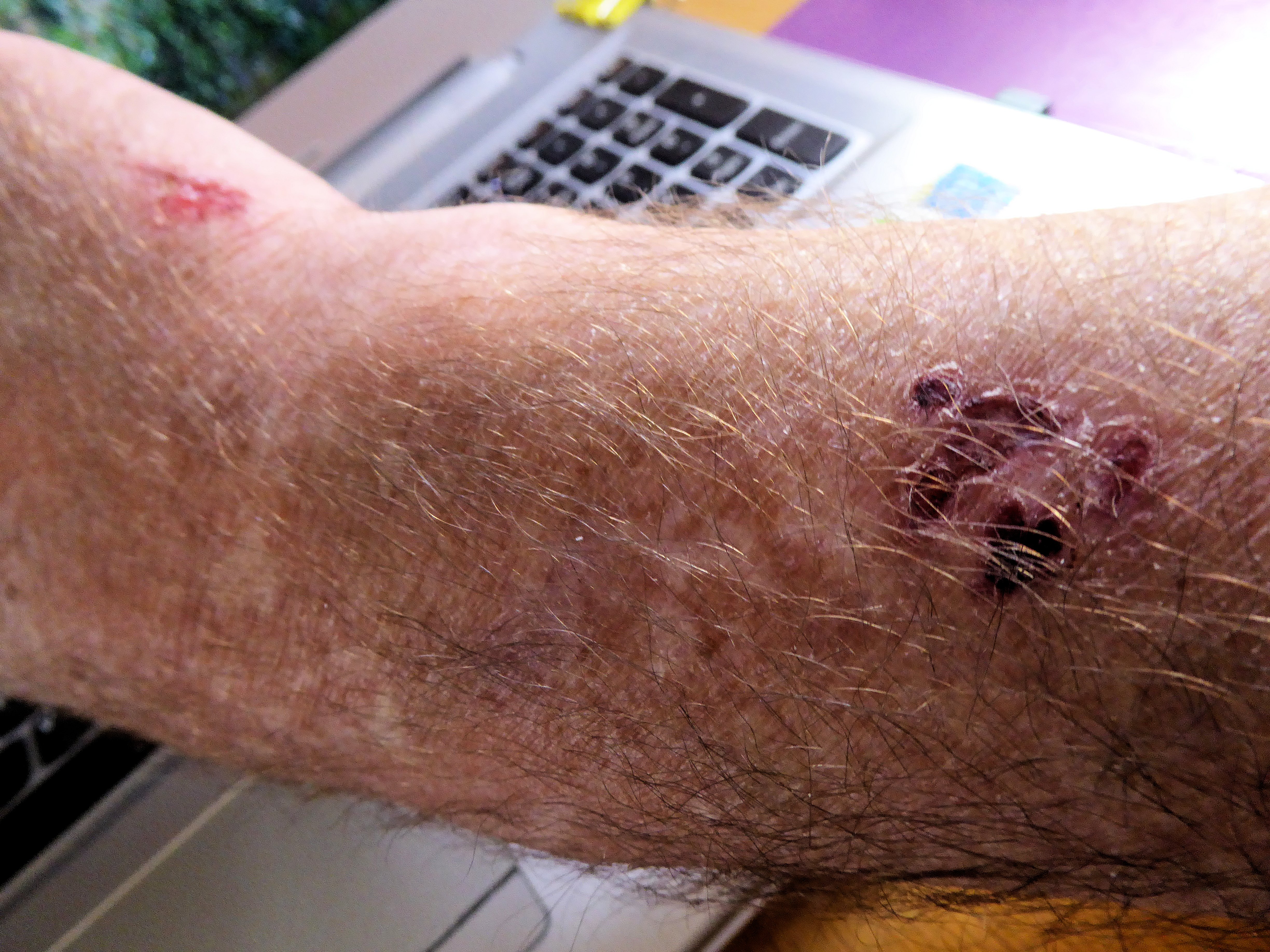 2020-Apr (some improvement, pre-Covid), middle of arm c 20cm has taken a year to heal